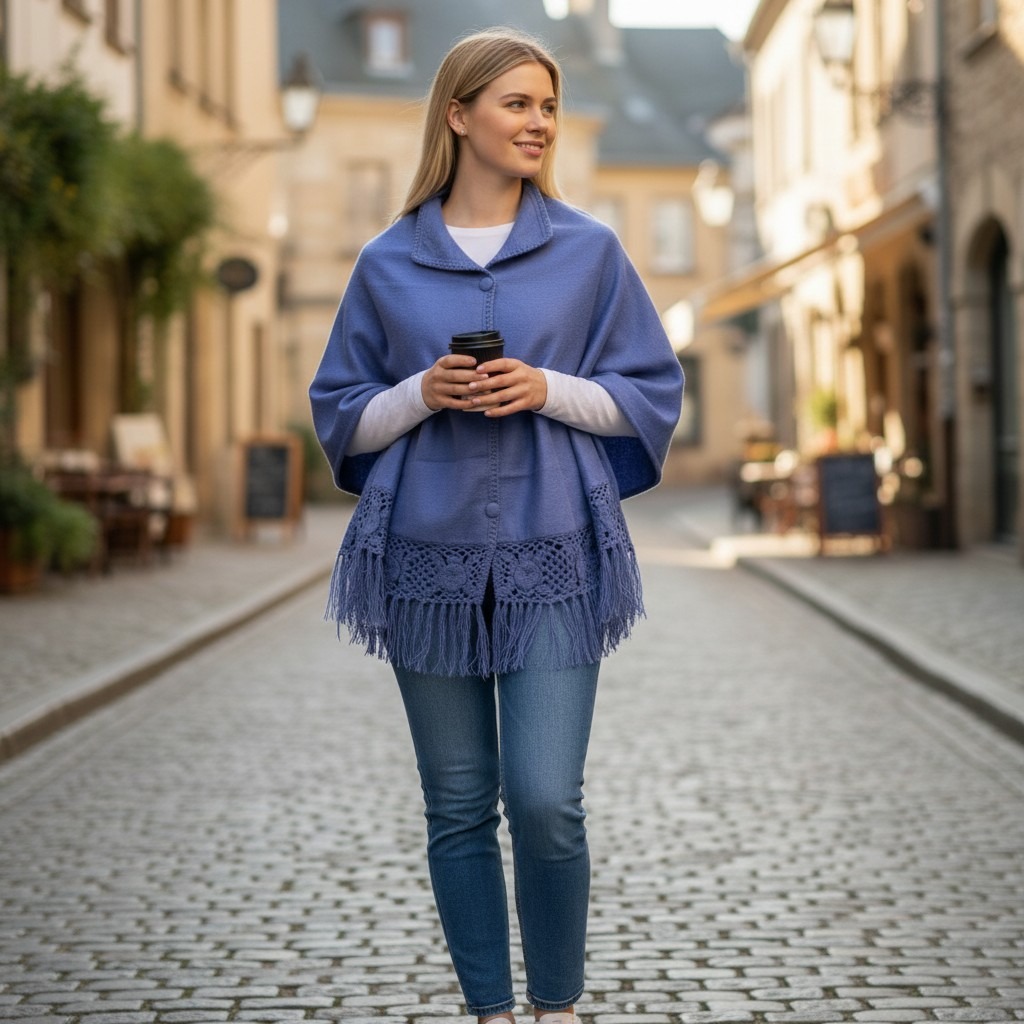 Capes wie dieses sind zur Weihnachtszeit von Jahr zu Jahr in Luxus-Kaufhäusern von New York bis Mailand ausverkauft… Aus gutem Grund: Kein zweites Darüber ist so elegant und vielseitig, zu alle Gelegenheiten rund um die Uhr.