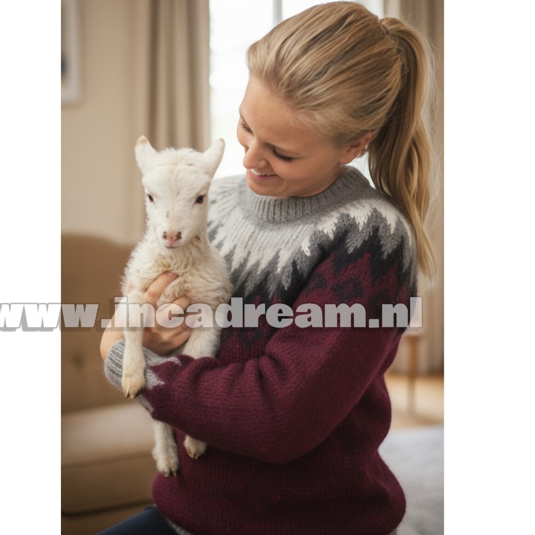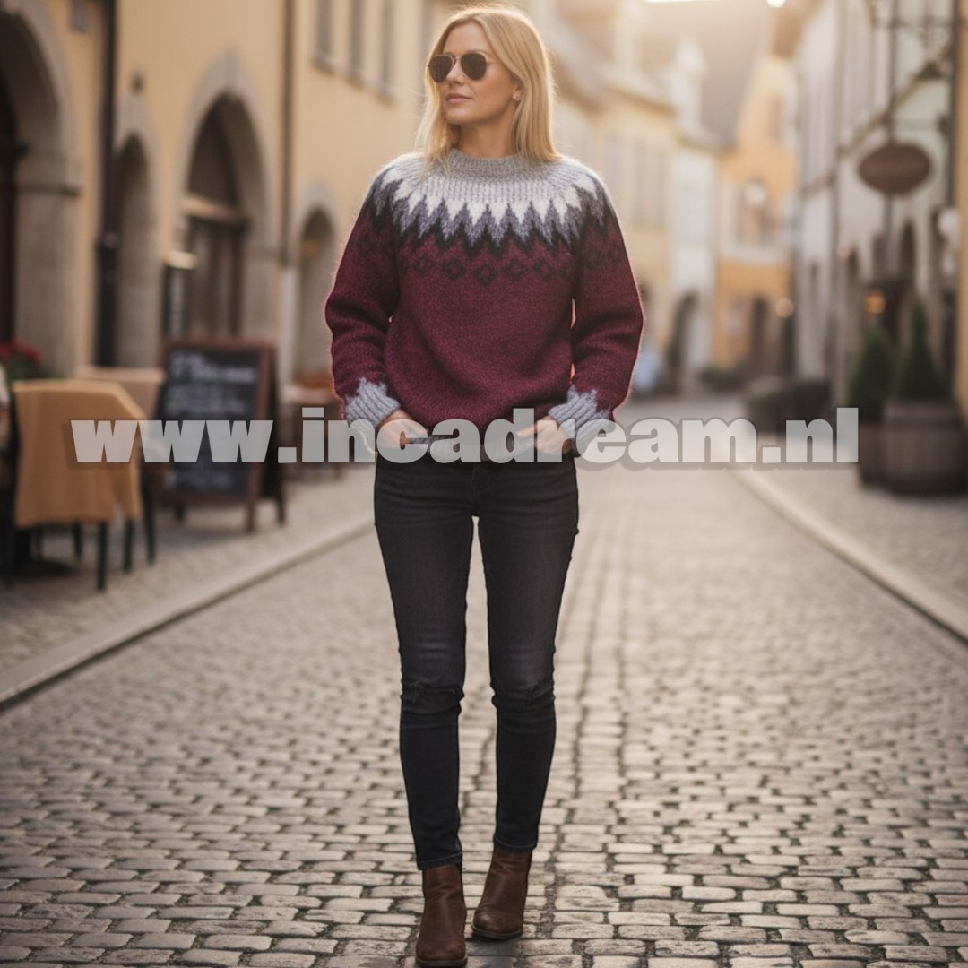 Die Kombination aus roten und grauen Farbtönen mit Alpaka-Motiven und geometrischen Andenmuster macht diesen Pullover besonders. Alpaka Wolle ist weltweit bekannt dafür, weicher, leichter und wärmer als Schafwolle zu sein – so bleiben Sie gemütlich warm ohne schweres Gewicht.