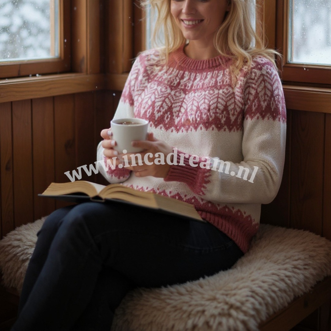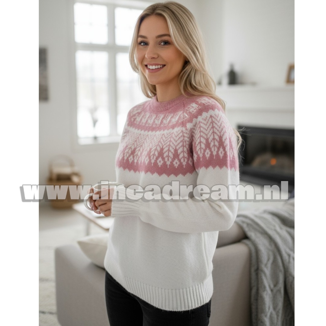 Handgefertigter Alpaka Wollpullover, hergestellt in Peru mit traditionellen Andenmustern. Weich, warm und leicht – perfekt für den Winter.