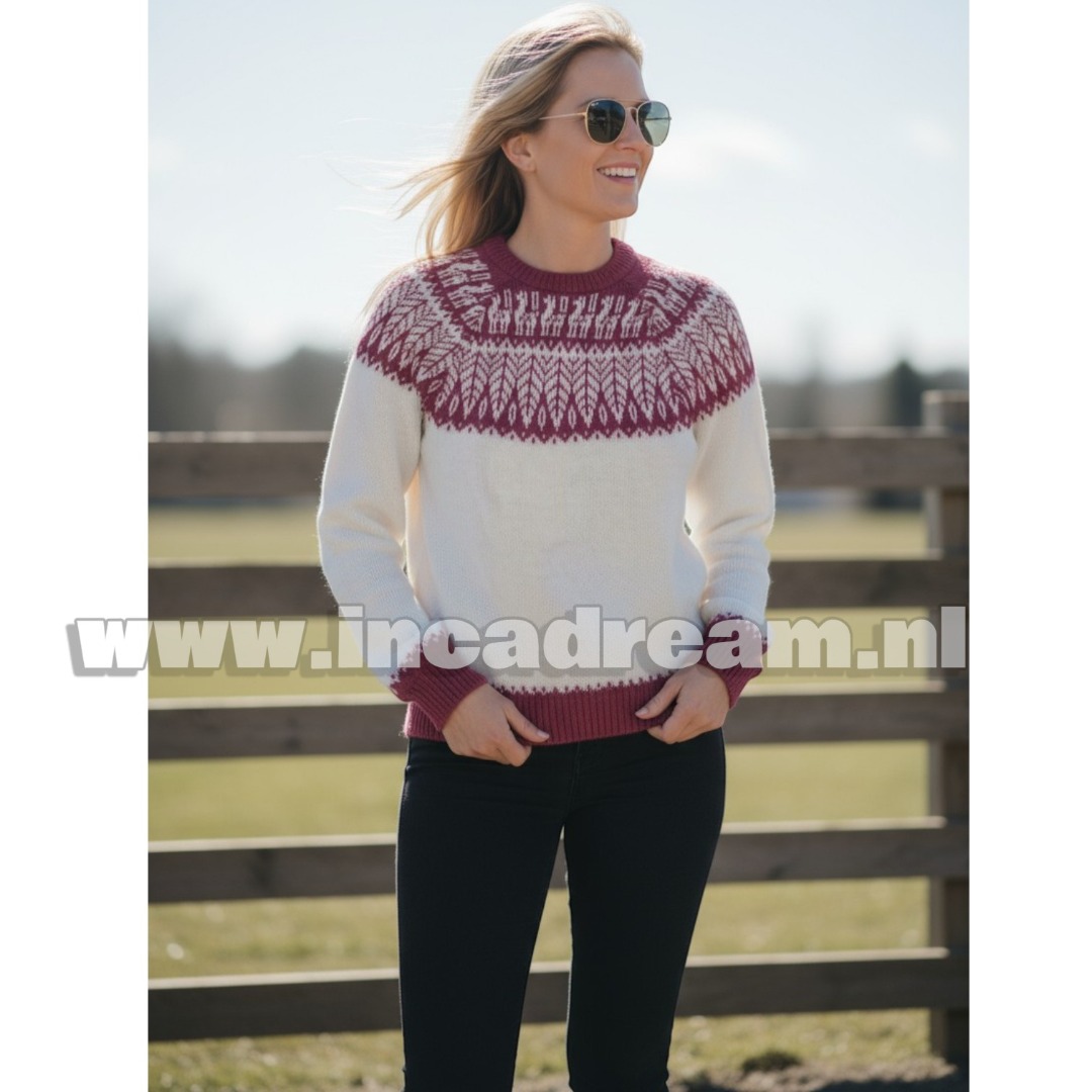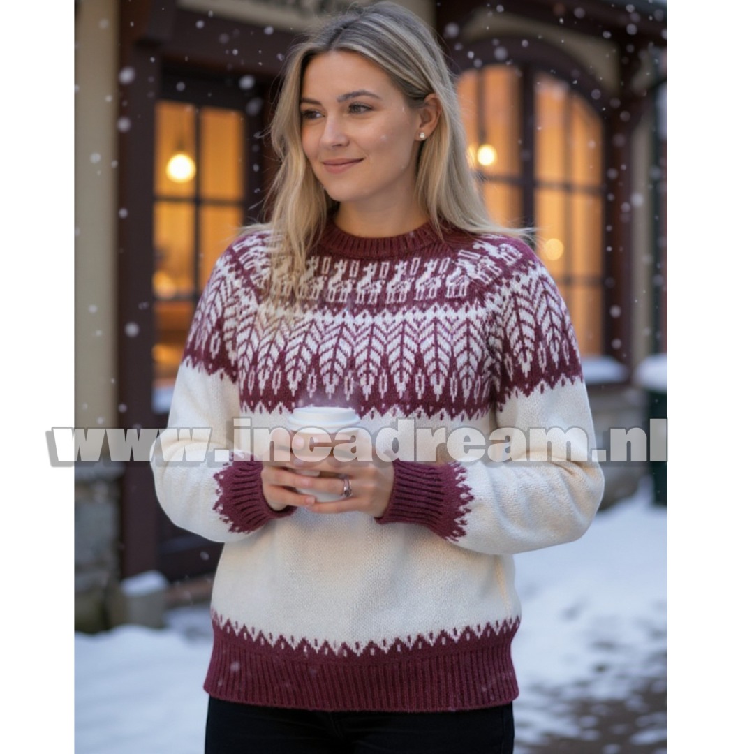 Die Kombination aus roten und grauen Farbtönen mit Alpaka-Motiven und geometrischen Andenmuster macht diesen Pullover besonders. Alpaka Wolle ist weltweit bekannt dafür, weicher, leichter und wärmer als Schafwolle zu sein – so bleiben Sie gemütlich warm ohne schweres Gewicht.
