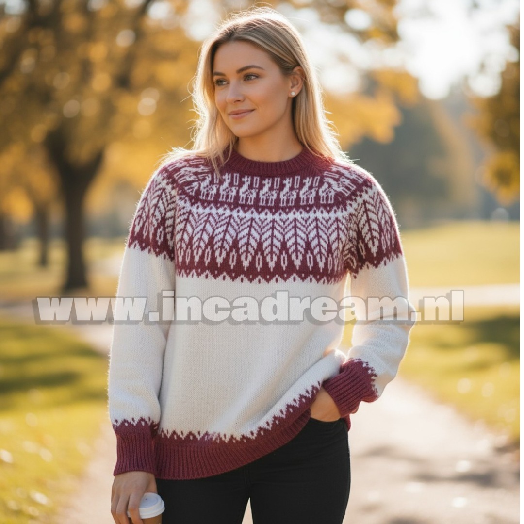 Handgefertigter Alpaka Wollpullover, hergestellt in Peru mit traditionellen Andenmustern. Weich, warm und leicht – perfekt für den Winter.