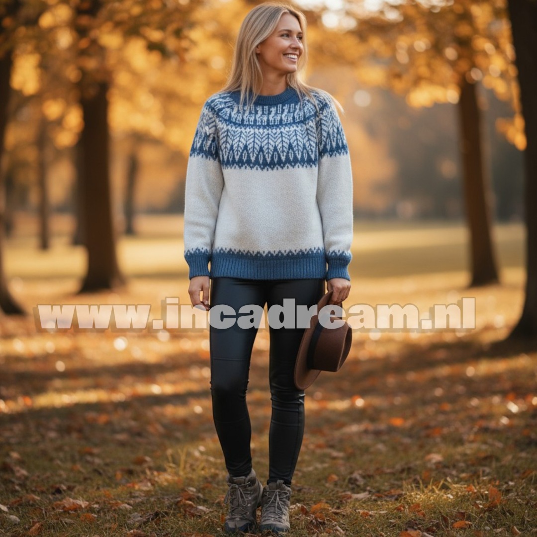 Handgefertigter Alpaka Wollpullover, hergestellt in Peru mit traditionellen Andenmustern. Weich, warm und leicht – perfekt für den Winter.