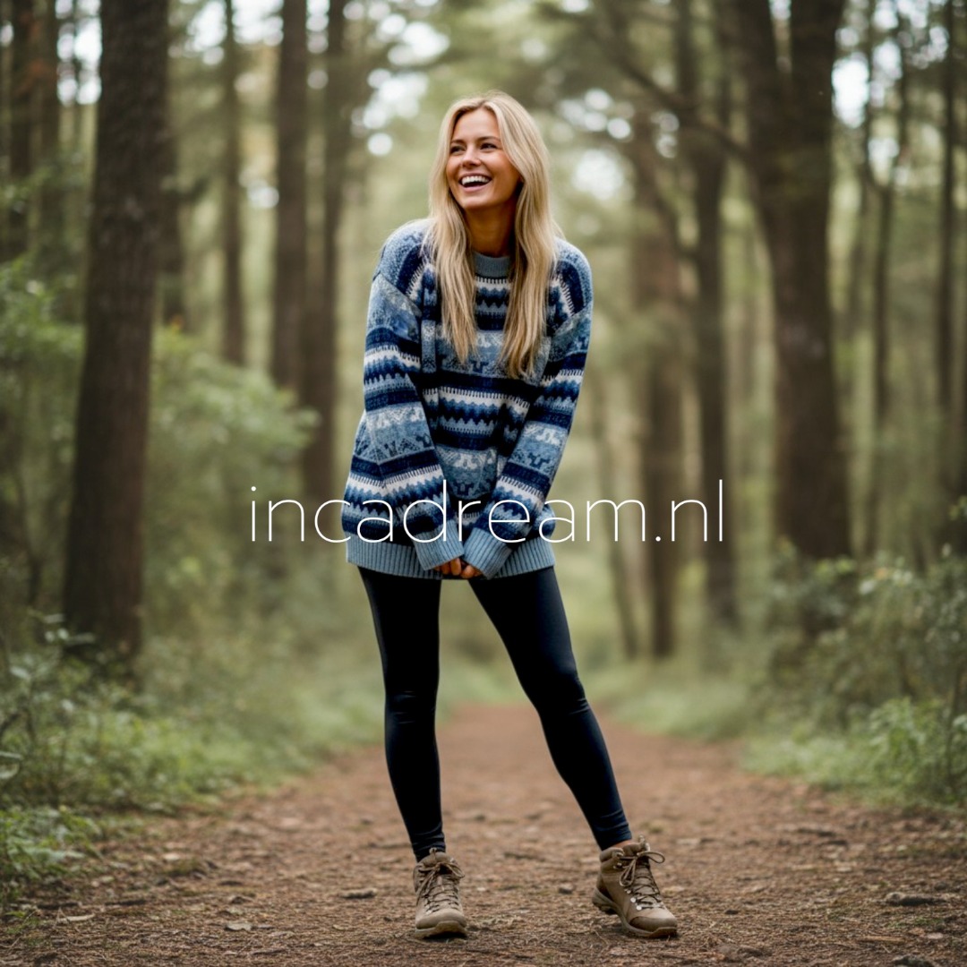 Warm und Weich Alpaka Pullover mit Kapuze für Damen . Anden Design mit Lamas und Geometrischen Details