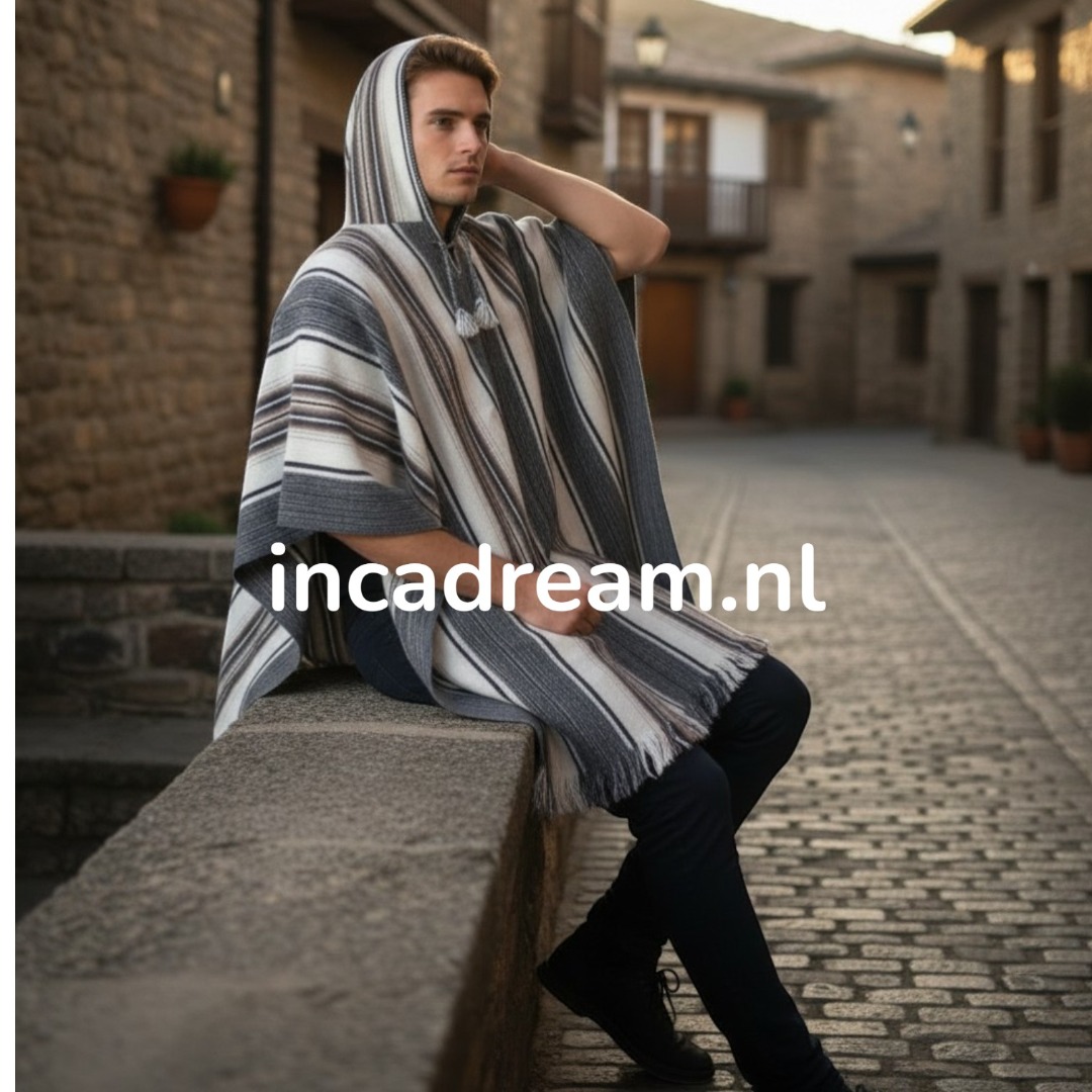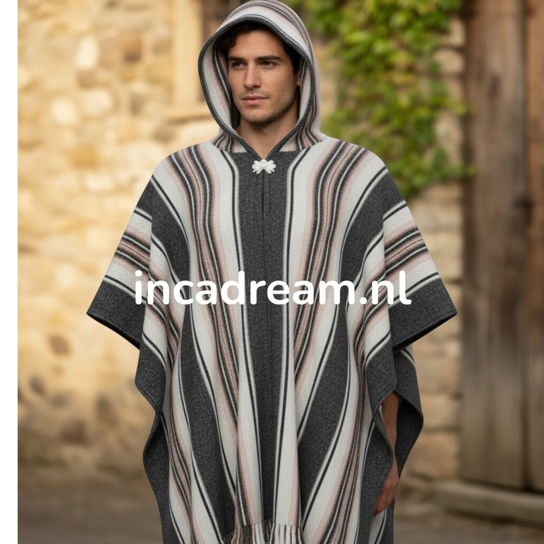 Achten Sie darauf, kaltes Wasser und weiche Reinigungsmittel zu verwenden. Poncho aus 100 % Wolle, handgefertigt, gestreift,  Ein hochwertiger, handgewebter Poncho mit Kapuze. Hergestellt in Peru