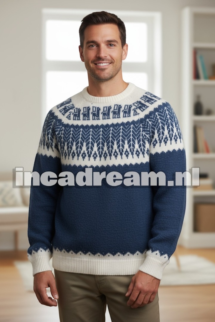Handgefertigter Alpaka Wollpullover, hergestellt in Peru mit traditionellen Andenmustern. Weich, warm und leicht – perfekt für den Winter.