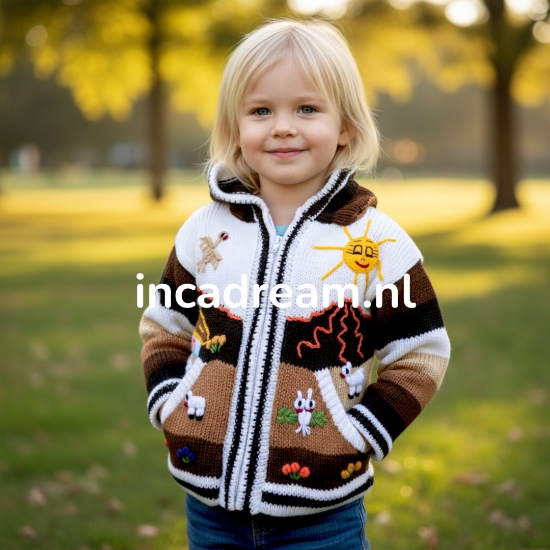 Peru Kinder Strickjacke Kapuze  Handarbeit Peru Kinder Strickjacke Kapuze  HandarbeitDiese liebevoll handgearbeitete Strickjacke für Ihren Jungen oder Ihr Mädchen ist ein echter Hingucker. Individuelle Motive machen diese Strickjacke zu einem echten Einzelstück, geeignet für einen Spaziergang in der Natur bei milden Temperaturen, für zu Hause aber auch ideal als Geschenk. Holen Sie sich Ihr Unikat für Ihr Kind.Kinder Strickjacke Unisex Bauernhof Tiere Kapuze Diese warme Wolljacke aus Peru wurde engmaschig gestrickt und ist besonders widerstandsfähig. Saum und Ärmelenden sind doppelt gestrickt. Sie hat zwei Taschen und lässt sich per Reißverschluss verschließen.Kinderstrickjacke Aus Peru Baby Mädchen Jungen Kapuze Tiermotive Handarbeit, Strick Kinderjacke Kapuze Mädchen Tiermotiv mehrfarbig bestickevtl. kann die Anordnung der Figuren ein klein wenig variieren(... dafür ist es ja Handarbeit)